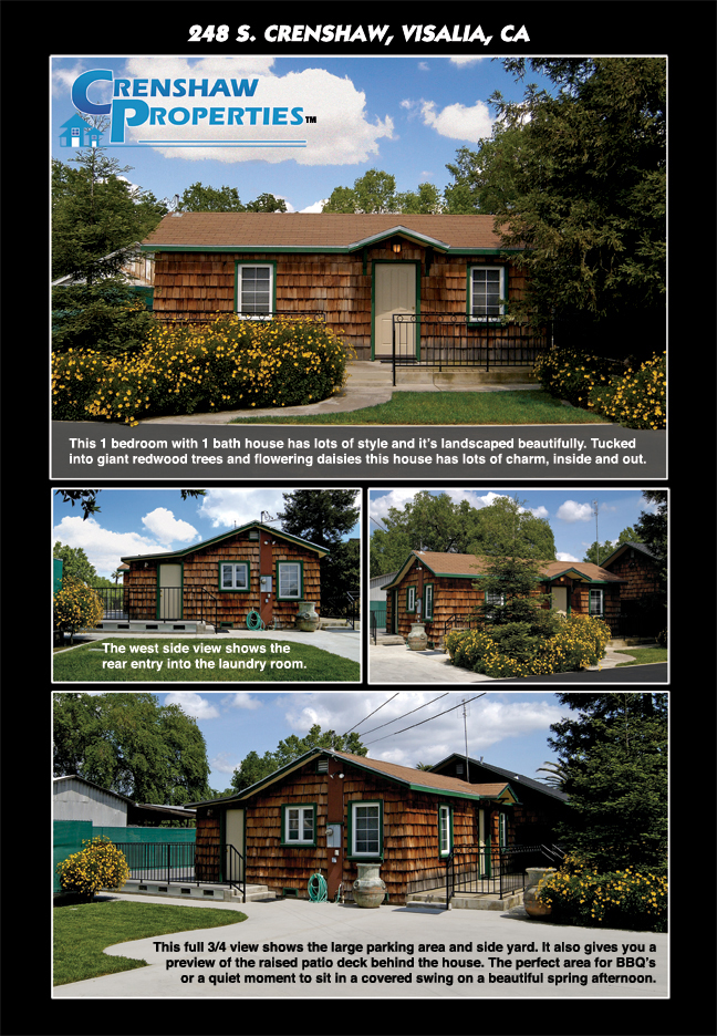 For more information or to see in person CALL Bill or Charlotte Crenshaw / Crenshaw Properties